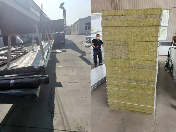 2. 열 단열재 : 컬러 스틸 플레이트 중간의 핵심 재료는 열전도율이 낮고 열 절연 성능이 우수하여 건물의 에너지 소비를 줄이는 데 도움이됩니다.