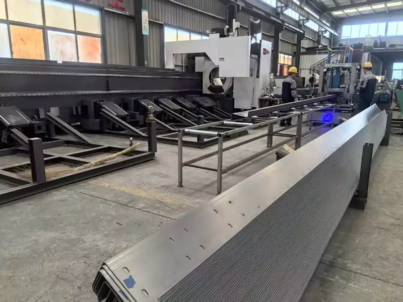 2. 펀칭: CNC 펀칭 장치가 장착되어 웹과 플랜지의 다각도 펀칭을 지원하며 구멍 직경 공차는 ±0.2mm, 구멍 간격 정확도는 ±0.3mm입니다. 또한 미국 표준 C단면 강철 연결 패턴(예: Simpson Strong-Tie 어댑터 구멍)을 준수하는 구멍을 동시에 생성할 수도 있습니다.