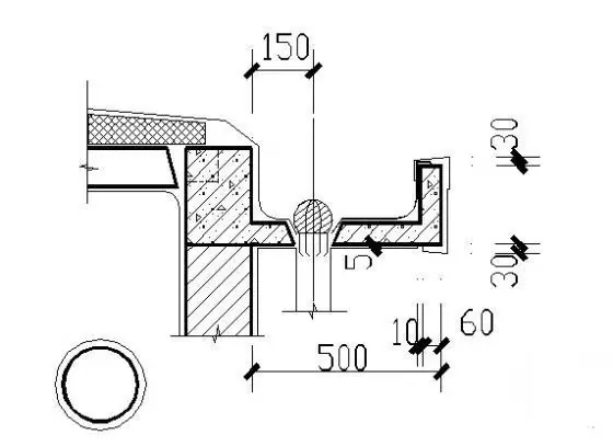 지붕 데크 위에 후레싱을 설치할 수 있습니다. 홈통의 하단은 지붕 데크 아래에 배치하고 실런트로 밀봉해야 합니다. 주로 빗물받이와 연결하기 위해 배수구 바닥에 배수구를 제공해야 합니다.